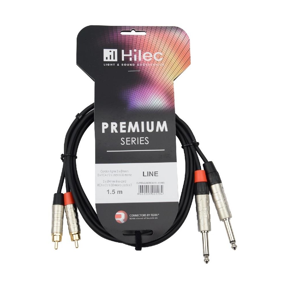 CABLE 2 JACK 6.3 MONO A 2 RCA MACHO 1.5m PREMIUM HILEC