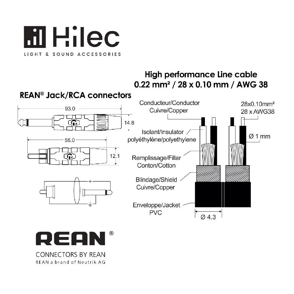• Cable de línea 2x Jack 6.3mm / 2x RCA con conectores REAN